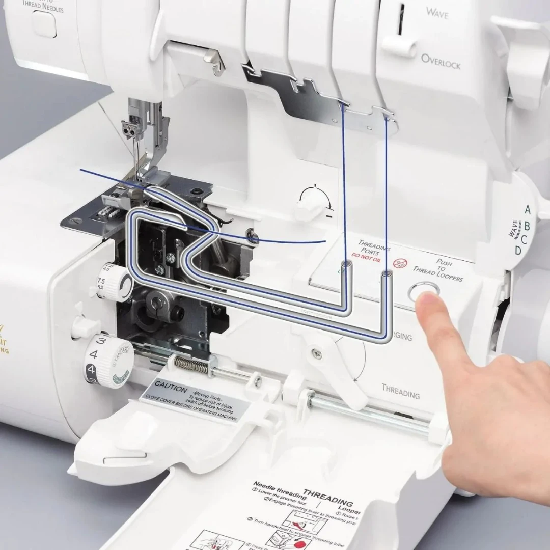 Navleče za vás vítr. S revoluční technologií Jet-Air Threading™ stačí jediný stisk páčky a nit se proudem vzduchu provede trubkovými smyčkovači až do očka. Žádná barevná vodítka, žádné pořadí, žádné zdržování jen okamžité navlečení a víc času na šití. Zasuňte konec niti do navlékací pozice kteréhokoli smyčkovače a stiskněte páčku navlékání už není problém.