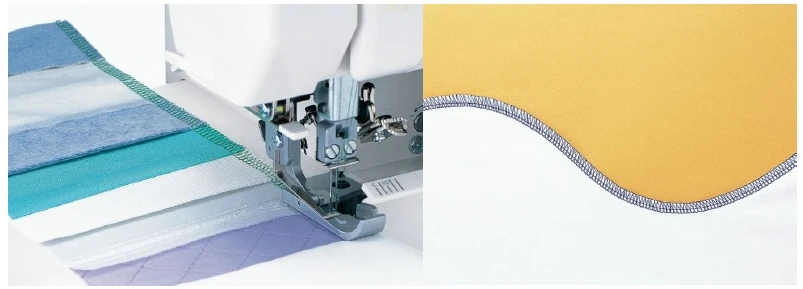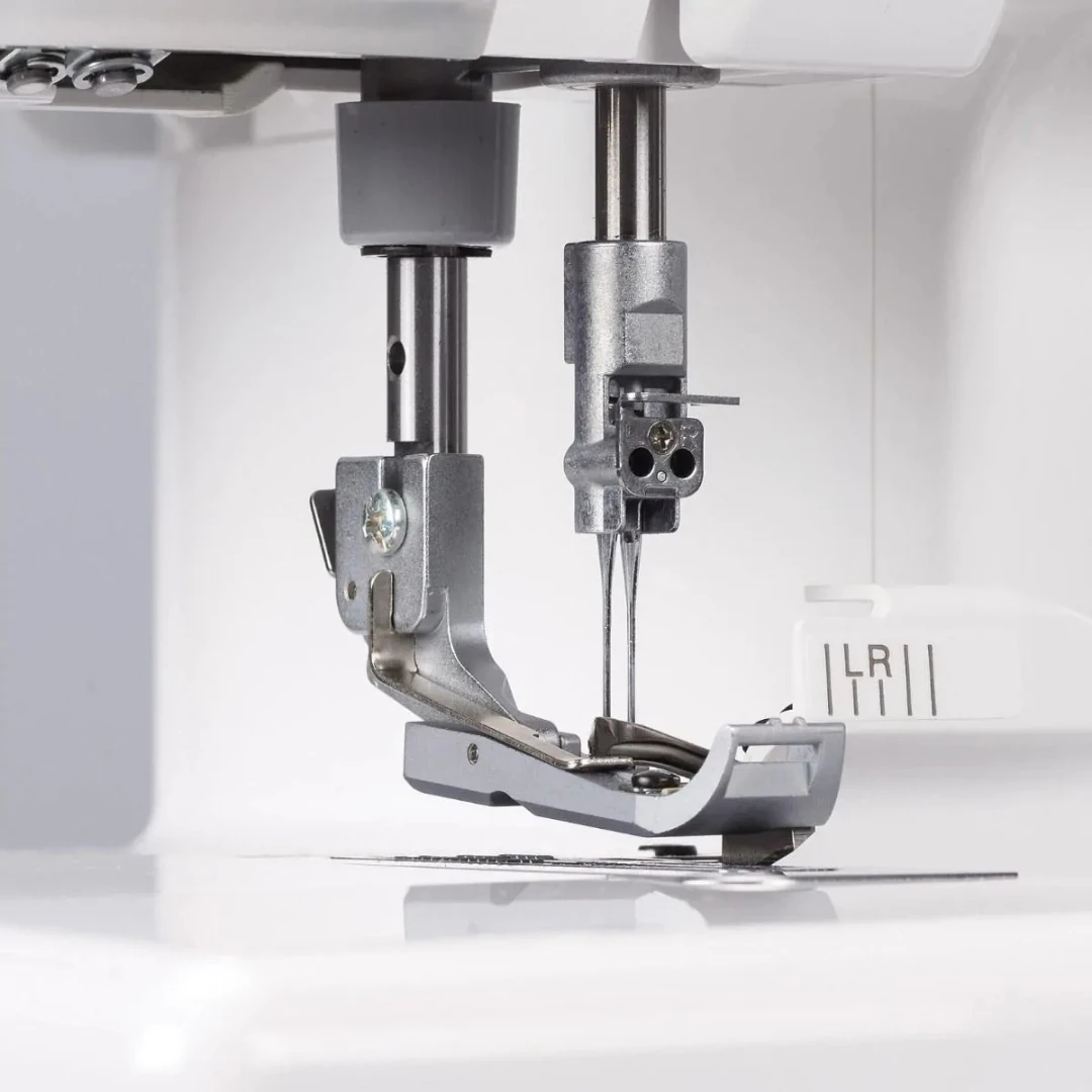 2-nitný overlockový steh – pro nejjemnější, úsporné začištění okrajů s minimálním objemem . Šije se jednou smyčkovačovou nití a jednou jehlou , takže je decentní, pružný a skvělý pro lehké a jemné materiály (šifon, batist, podšívky, prádlo). Vhodný pro úzké/široké obnitkování , 2-nitný rolovaný lem i 2-nitný plochý šev (flatlock) pro dekorativní nebo spojovací účely. S diferenciálním podáváním zůstane okraj rovný bez vlnění . (Pro namáhané švy zvolte spíše 3- nebo 4-nitný steh.)